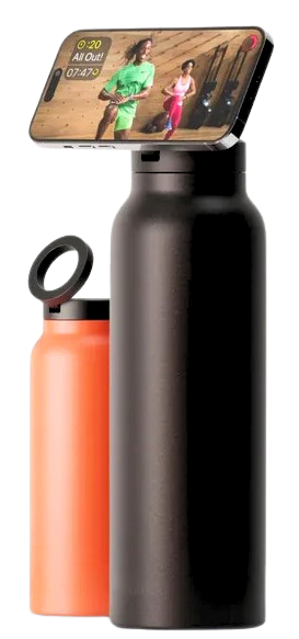 Nossa garrafa de aço inox com suporte para celular garante que você se mantenha hidratado e com as mãos livres para se concentrar no conteúdo."